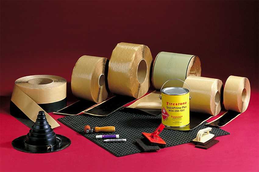 Кроме рулонной изоляции от влаги, существует также такая же лента. Если материалы служат для оклейки основной поверхности, то ленты — для заделки стыков между конструкциями, или применяются как накладки. Используют их в случае оклеивания угла двух стен, а также угол между стеной и полом.