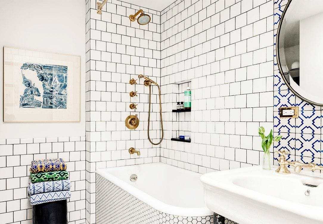 - белый цвет затирки повторяет другие присутствующие в комнате элементы, например, сочетается с белоснежной сантехникой;