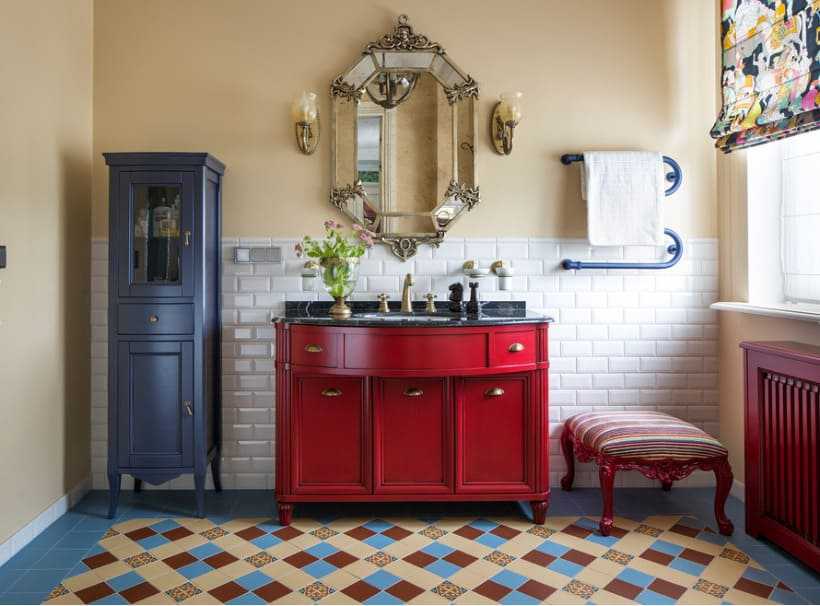 - в случае с геометрической плиткой не хочется создавать яркий контраст.