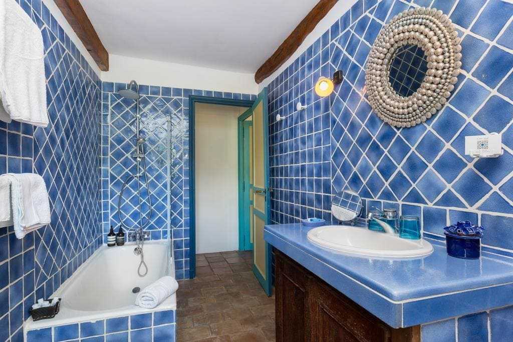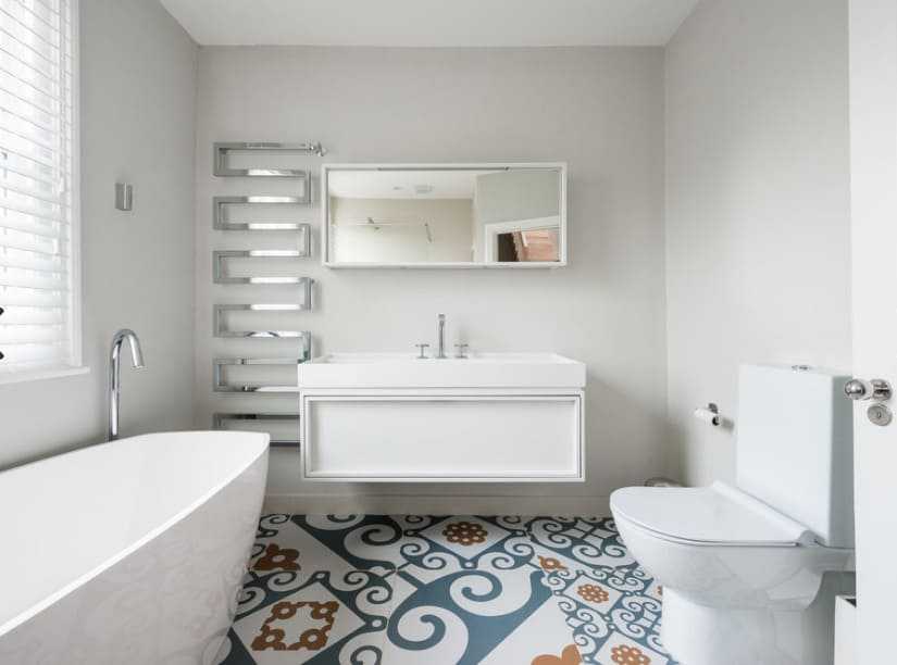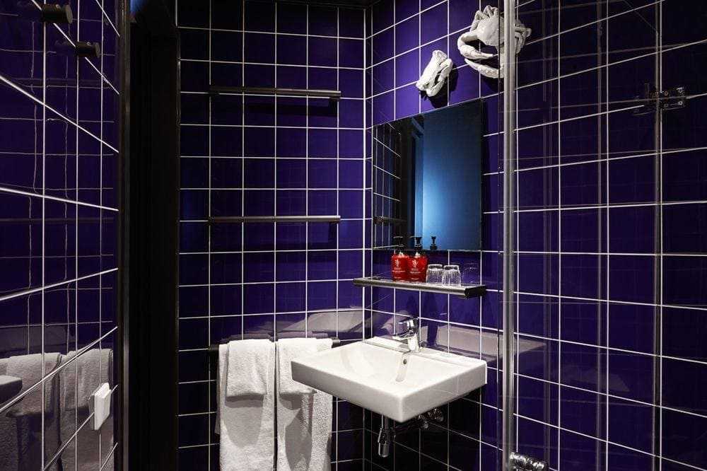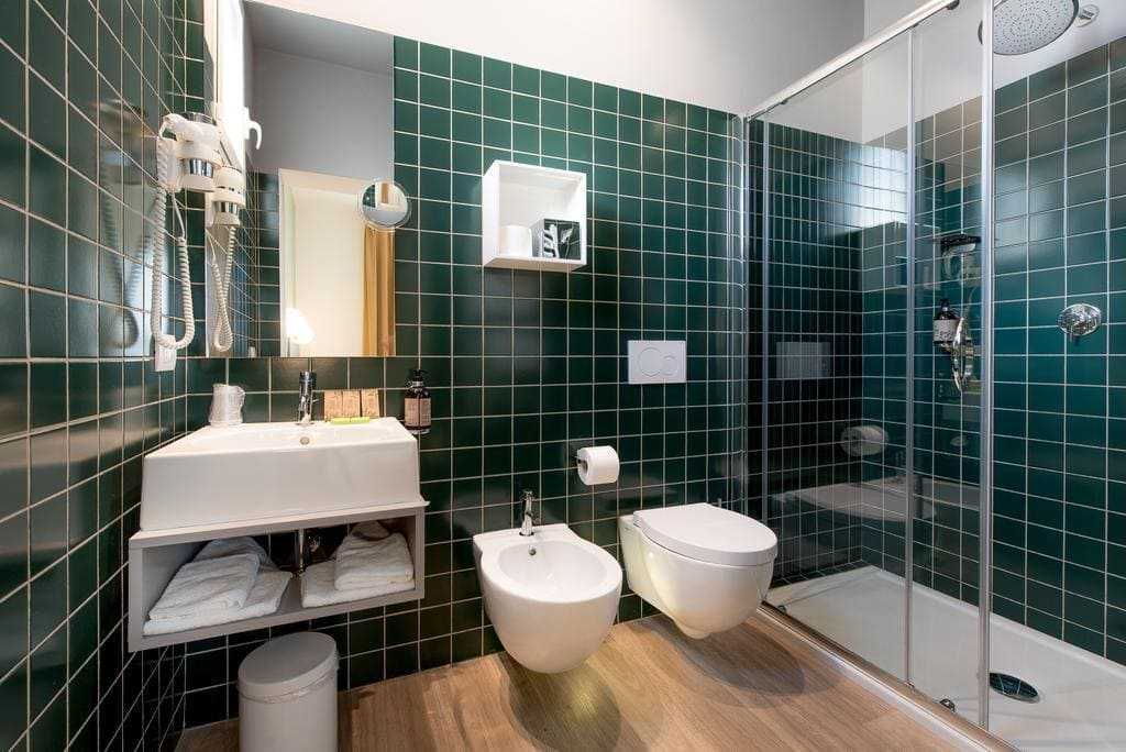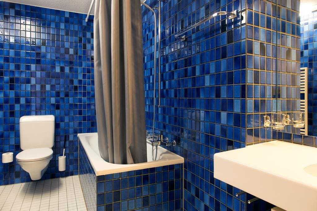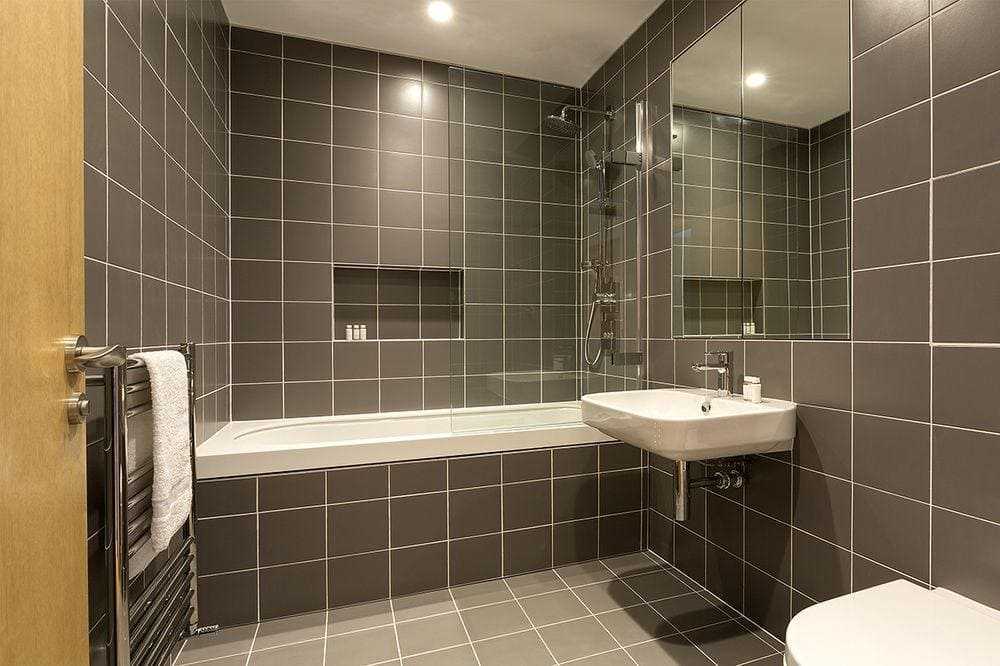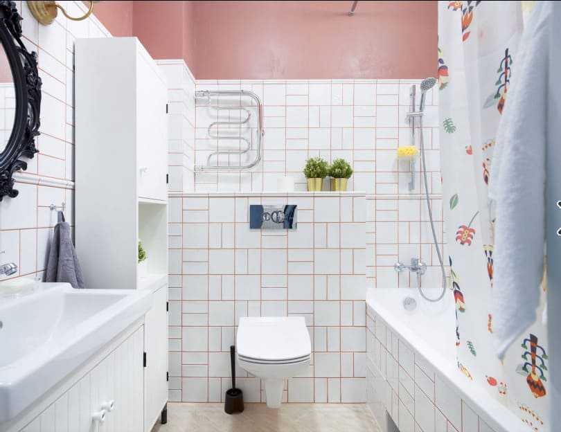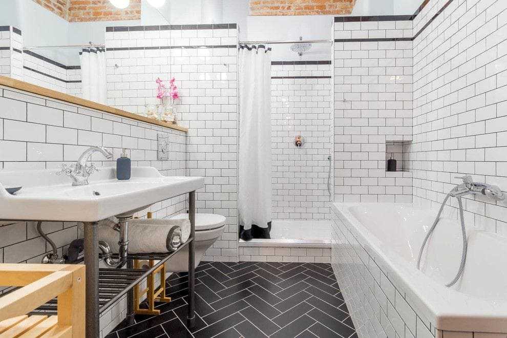 - нужно создать акцентную контрастную стену или сыграть на контрасте с белой сантехникой.