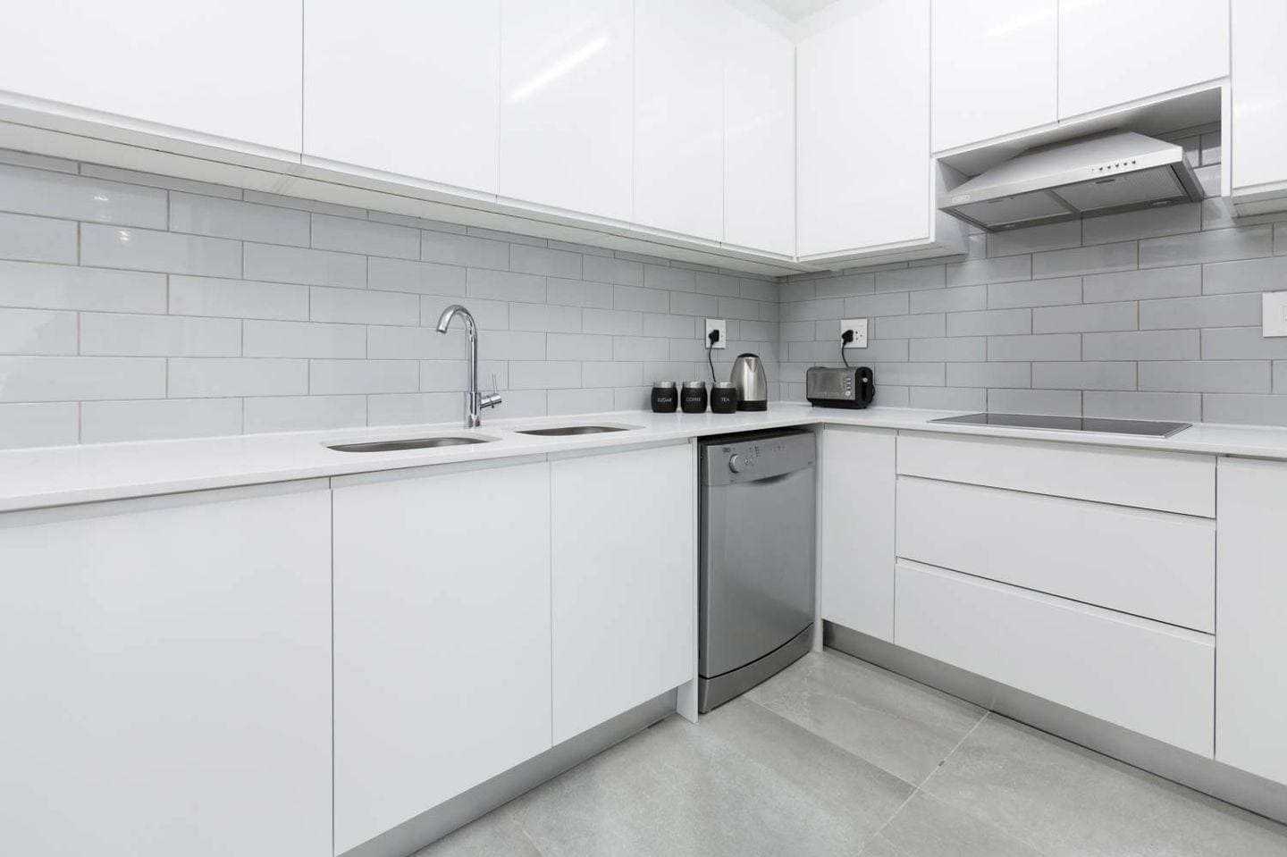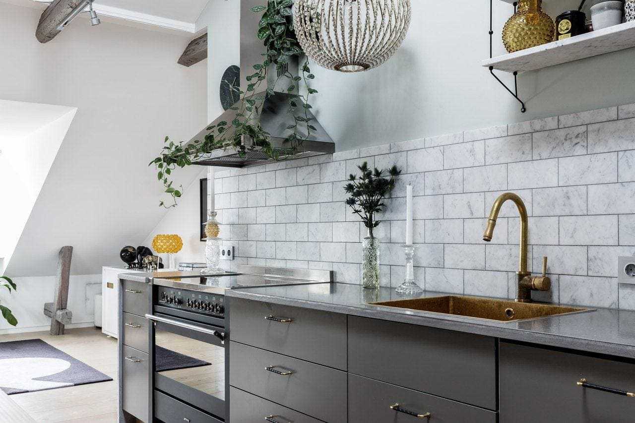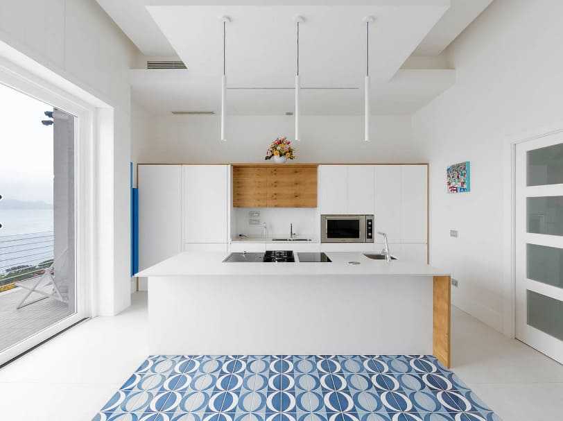 если нужно визуально стереть границу между белой плиткой стен или фартука и белой столешницей;