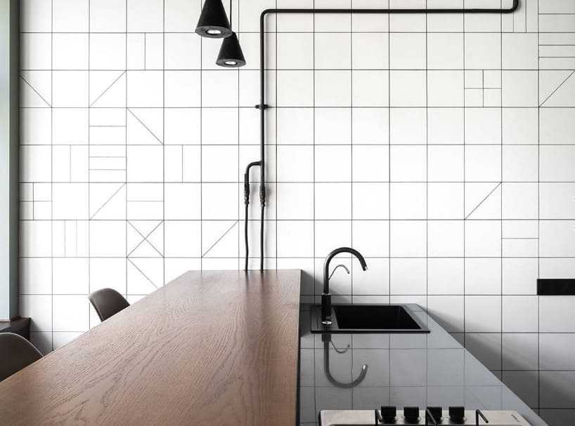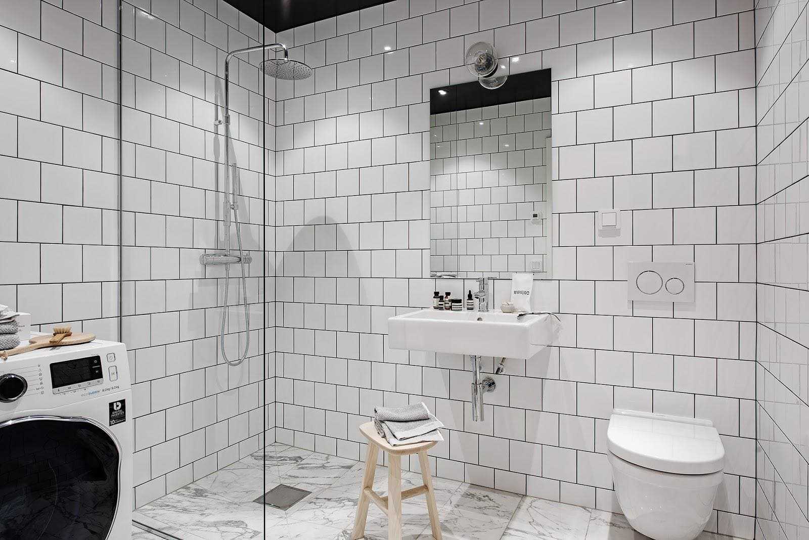 - если затирка выступает в качестве дополнительного мягкого акцента, подчеркивающего черно-белую гамму всего дизайна.