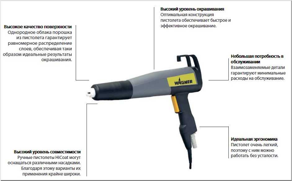Электростатический пистолет для покраски позволяет обрабатывать поверхности вне зависимости от того, какой формой они обладают. Способствует появлению сверхтонких покрытий, обычно их толщина достигает всего 30-250 микронов. Это экономичный вариант, который не будет трудозатратным, когда занимаются обслуживанием. Потому такой пистолет — лидер на современном рынке. При необходимости не уйдёт много времени даже на то, чтобы заменить краску.