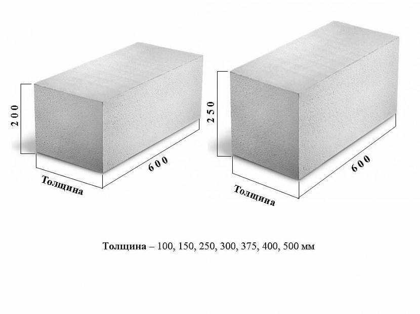 Размер блока: длина — 600 мм, ширина — 250 мм