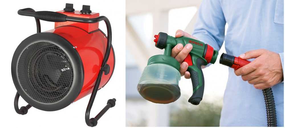 Ручной пульверизатор поможет нанести более тонкий слой, а тепловая пушка позволит повысить температуру в помещении, тем самым сократив срок высыхания краски.