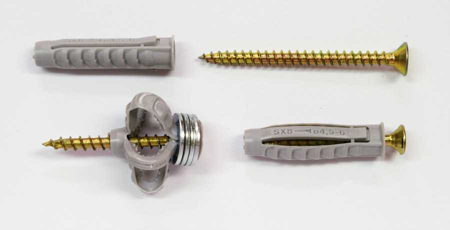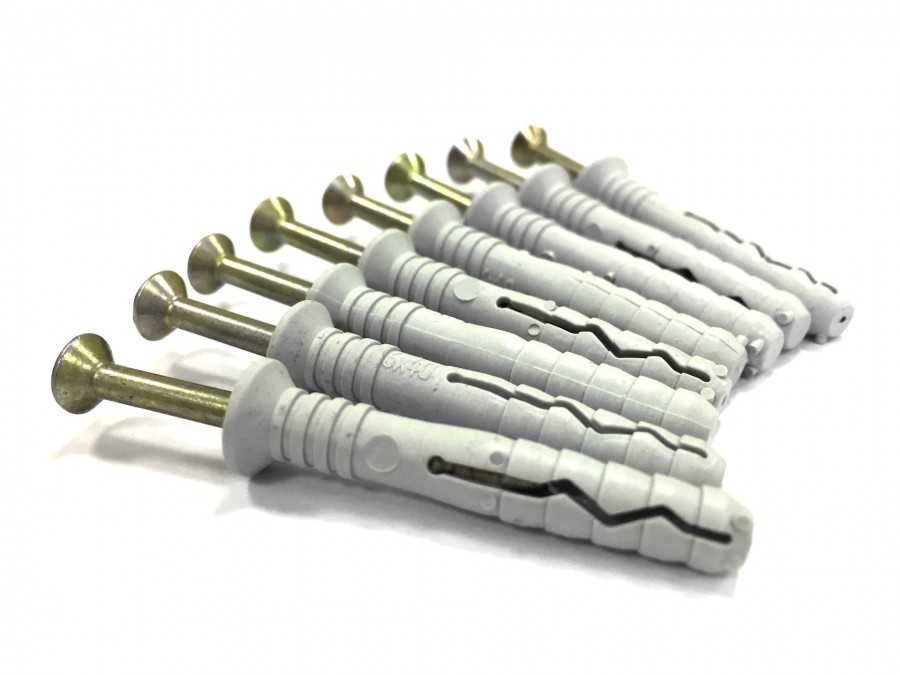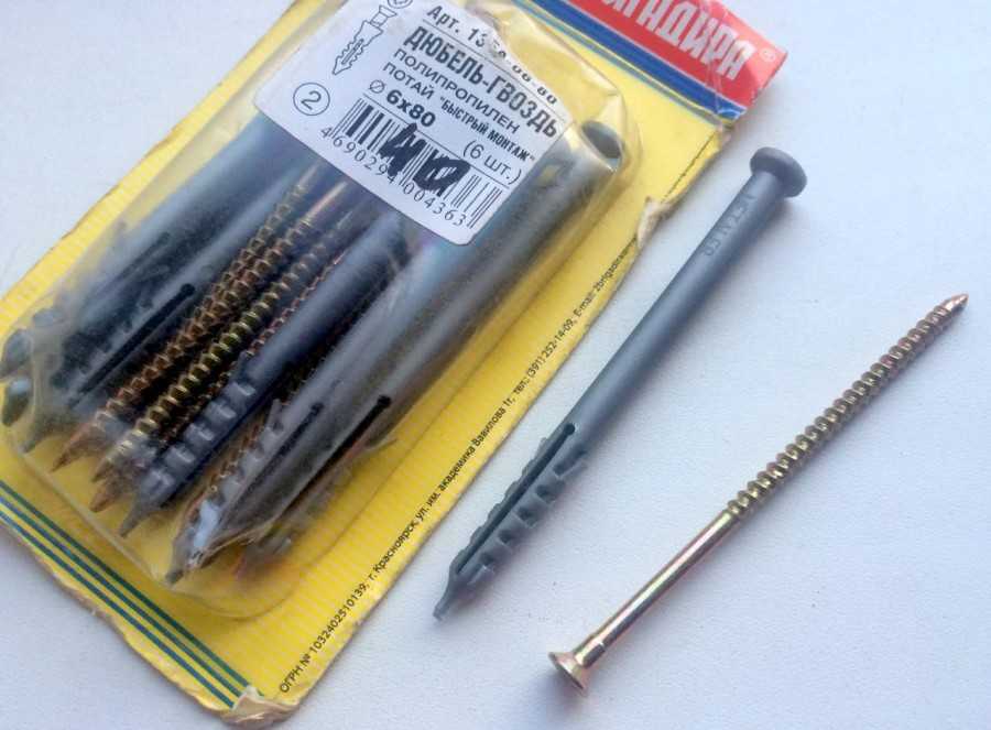 Гвозди широко распространенные дюбеля. Расширяющее приспособление этого изделия из нейлона и состоит из 3-х секций. В хвосте изделия располагается проходное отверстие, которое делает завинчивание легким и дает необходимый осевой ход шурупу.