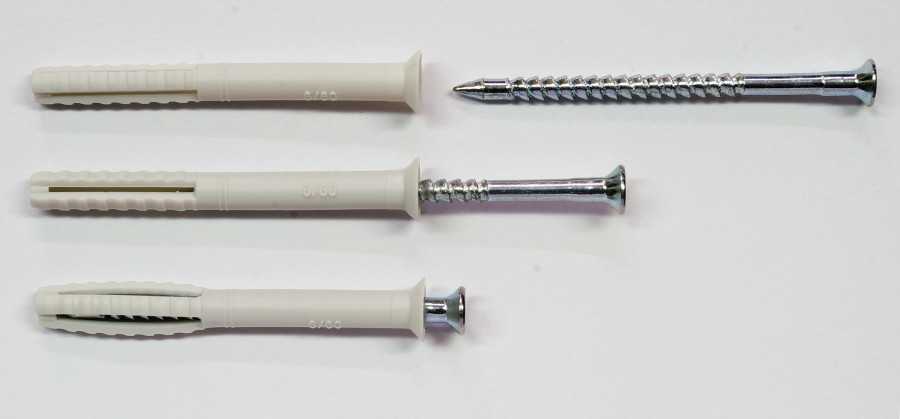 Это может быть непосредственный крепеж, когда на ввинченный дюбель шуруп вешается: