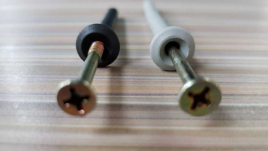 Крепеж чаще всего выпускается с резьбой и шлицем на металлической части. Работать с такими элементами намного проще, так как можно использовать отвертку для более легкого захода в отверстие.