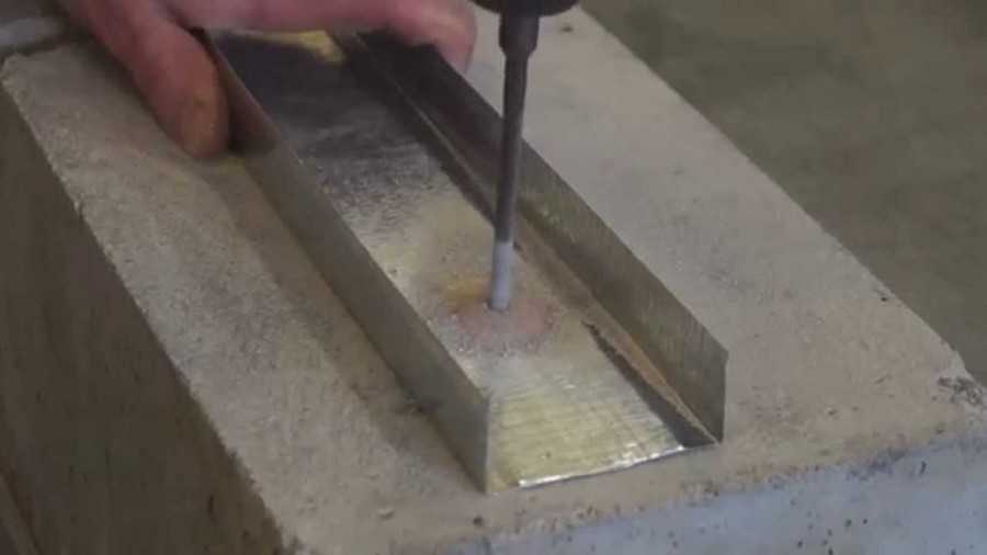 далее керном делается углубление на месте отметки, для правильной установки сверла;