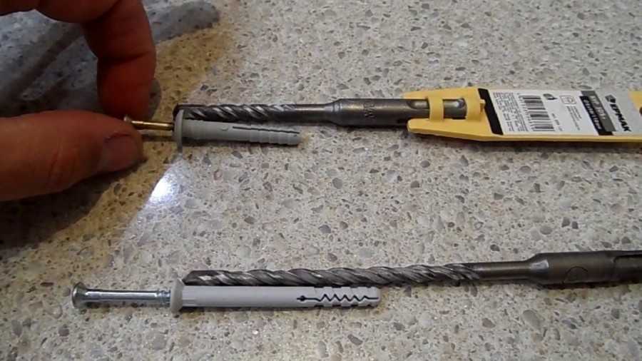 Важно и то, чтобы дюбель был по своей длине на 5–6 мм короче пробиваемого отверстия. При помощи пылесоса удаляется бетонная пыль, а затем патрон дюбеля углубляется молотком