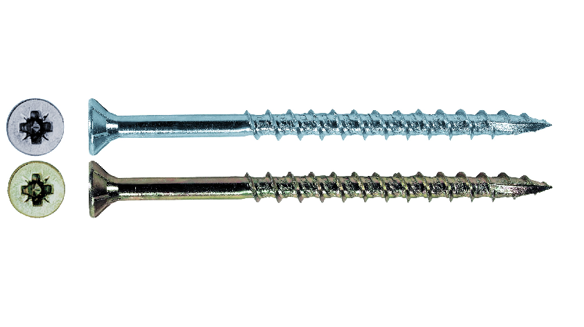 Также в мебельной промышленности используется ряд характерных шурупов, имеющих тупые концы, крупную резьбу, приспособленную для ДСП, специфические головки. Один из таких изделий – оцинкованный стальной шуруп, который позволяет присоединять листы ДСП под углом 90 градусов.