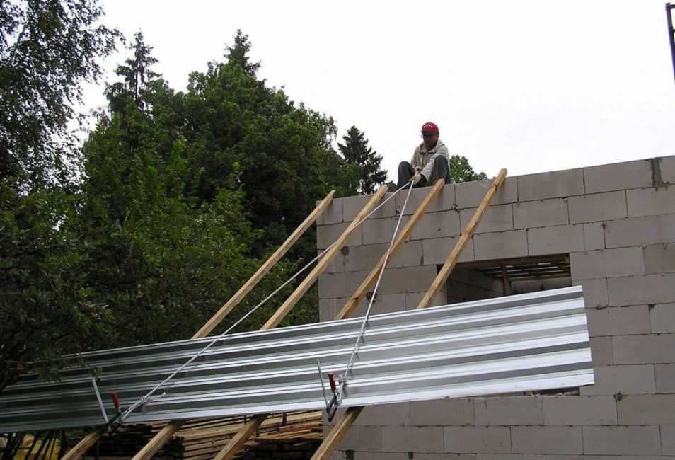 Монтаж профнастила во время сильных ветров запрещена. Из-за высокой парусности пластина, «надутая» ветром, может легко сорваться с крыши, увлекая за собой человека.