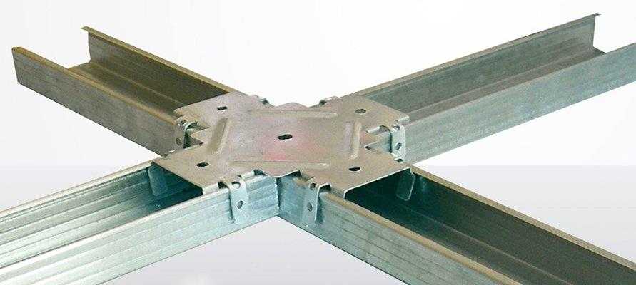 Также данный вид крепежей называют крабами. Их используют при ремонте больших площадей, когда длины профиля не хватает. Они позволяют достаточно жестко соединить элементы каркаса на одном уровне. Крепежи располагают перпендикулярно. Для установки данного вида креплений не требуются саморезы. Их используют только в случае значительной нагрузки. В противном случае конструкция закрепляется при помощи защелкивания профилей. Стоимость составляет от 7 рублей.