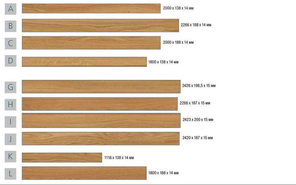 Разнообразие размеров. Наличие большого количества размеров инженерной доски, позволяет создавать напольное покрытие с минимальным количеством стыков. Это не только украшает внешний вид пола, но и ускоряет проведение монтажа указанного материала.