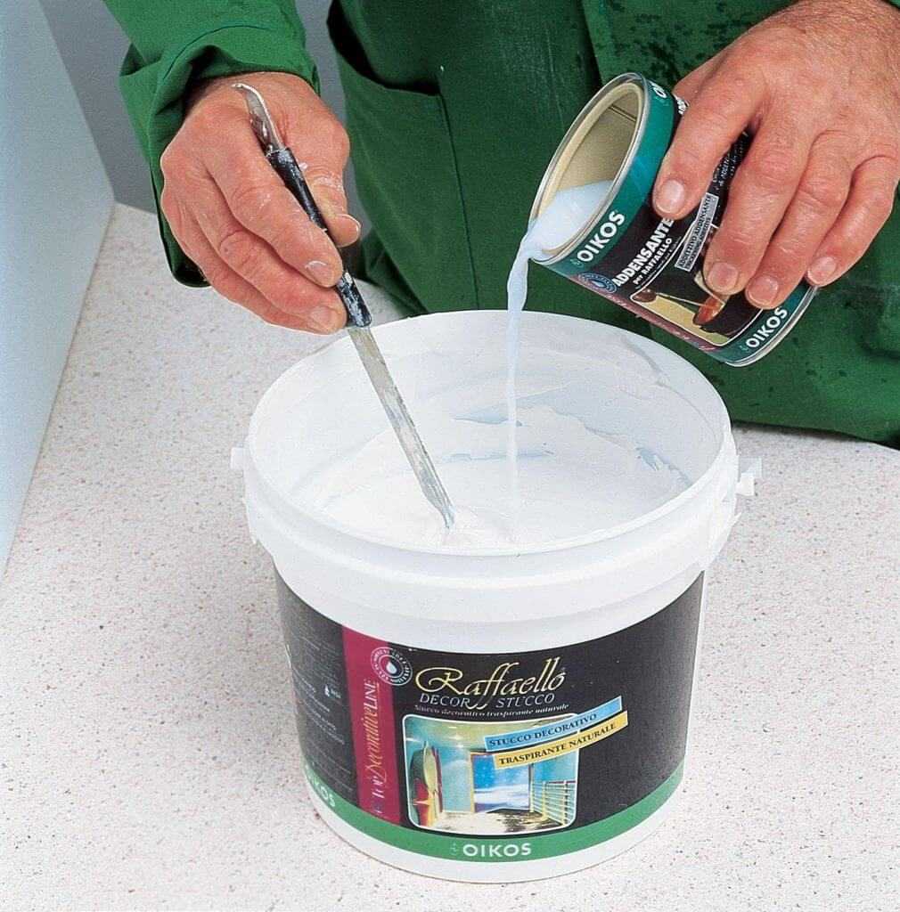 Растворитель или разбавитель следует добавлять в состав постепенно небольшими порциями. При этом смесь постоянно перемешивают до тех пора, пока она не станет однородной
