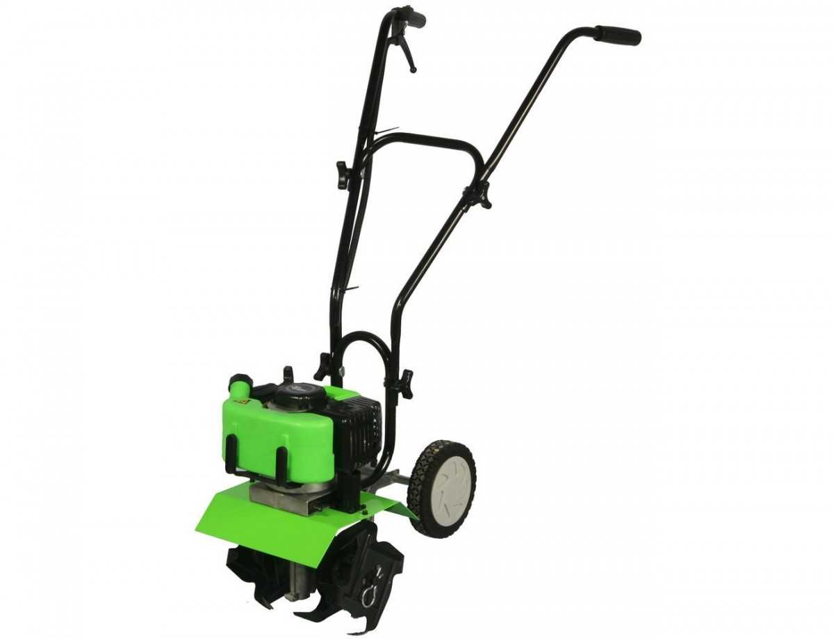 Бюджетный малогабаритный культиватор Champion GC243 позволяет эффективно обрабатывать почву в условиях ограниченного пространства. На модели установлен двухтактный бензиновый мотор мощностью 1,7 л/с и фрикционное сцепление. Коробка передач отсутствует, поэтому устройство способно двигаться только вперед с постоянной скоростью. Хороший вариант для владельцев участков небольших размеров, позволяющий обработать грядки под посадку. Ровность хода обеспечивают два колеса из литой резины, а работа выполняется посредством двух фрез, способных вспахивать полосы почвы шириной 24 см.