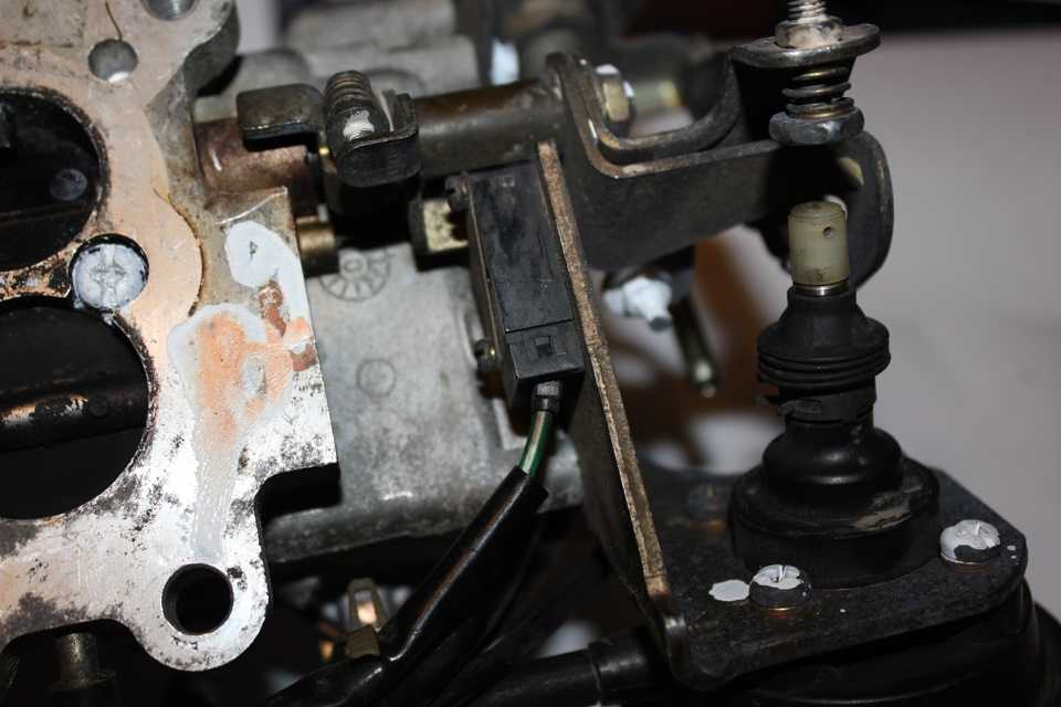 Переходим к пусковому зазору воздушной заслонки.Тут все очень непросто. У мембраны существует люфт относительно системы тяг. Подробно об этом я писал здесь. Для установки пускового зазора ВЗ необходимо подать вакуум на вакуумный привод и измерить зазор, например, щупом: