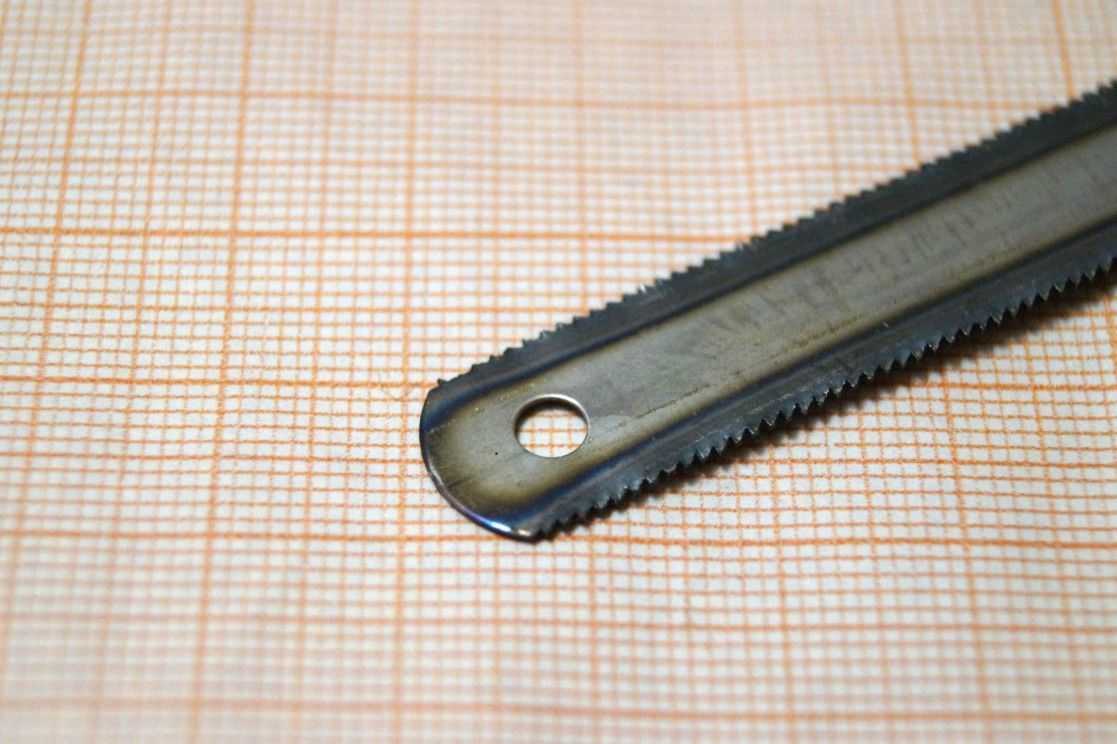 Здесь рабочей частью является полотно для ножовки, которое имеет вид тонкой ленты с мелкими зубьями. Для производства полотен используются твердые марки стали.