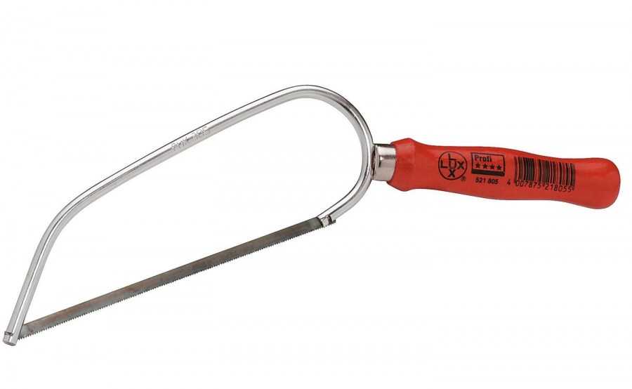 Стальное полотно отличается легким ходом и может поворачиваться на 360°. Этот простой, но многофункциональный инструмент позволяет выполнять различные работы и выступать в качестве ручного лобзика. Полотно легко меняется, а специальный механизм регулирует его натяжение.