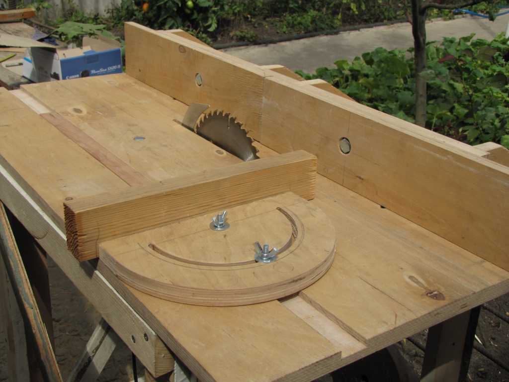 Можно сделать простую конструкцию или оснастить ее расклинивающим ножом съемной конструкции. Дополнительно выполняют дисковую защиту, чтобы рабочая стружка не летела на человека, который будет работать за столом. Чтобы делать распил под углом, необходимо добавить детали для регулирования наклона диска.
