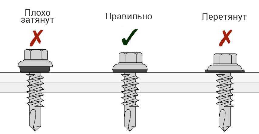 Благодаря острому кончику саморез без труда ввинчивается в металл, толщина которого не превышает 2 мм. Саморез вкручивают с помощью шуруповерта, что, с одной стороны, очень удобно, скорость монтажа возрастает, усилий прилагается минимум на вкручивание.
