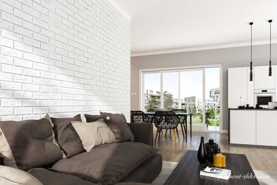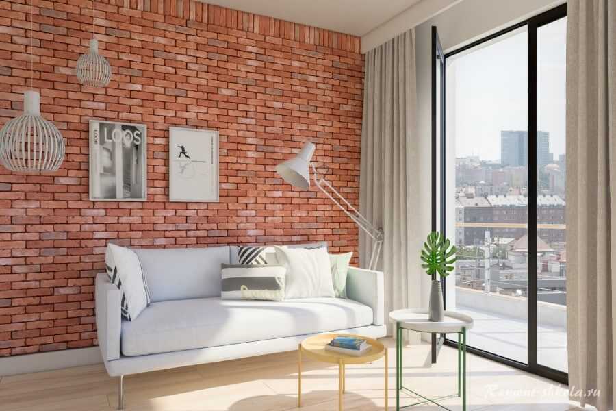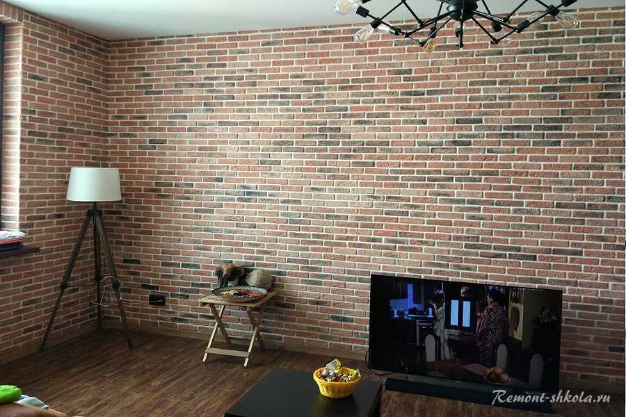 Одним из материалов для отделки стены “под кирпич является пенопласт, доступный в приобретении, легкий в использовании и часто применяемый на практике.