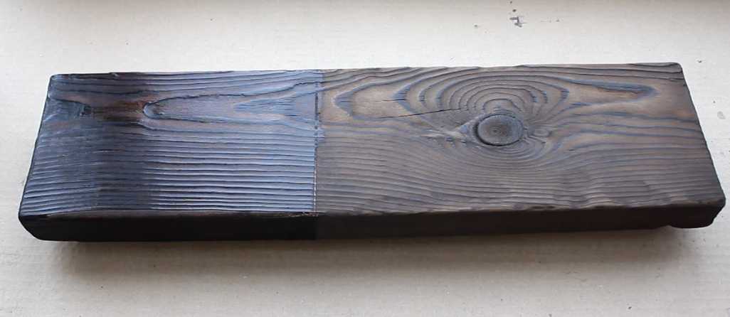 После нанесения защитного покрытия линии и текстура обожженного дерева проявляется более четко
