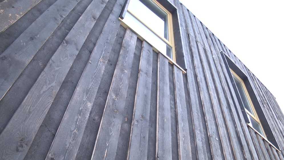 - Если обожженное дерево будет частью фасада, то мы рекомендуем покрыть его составом, который защищает от воздействия прямого солнечного света. В противном случае древесина потеряет контрастность уже через пару месяцев.