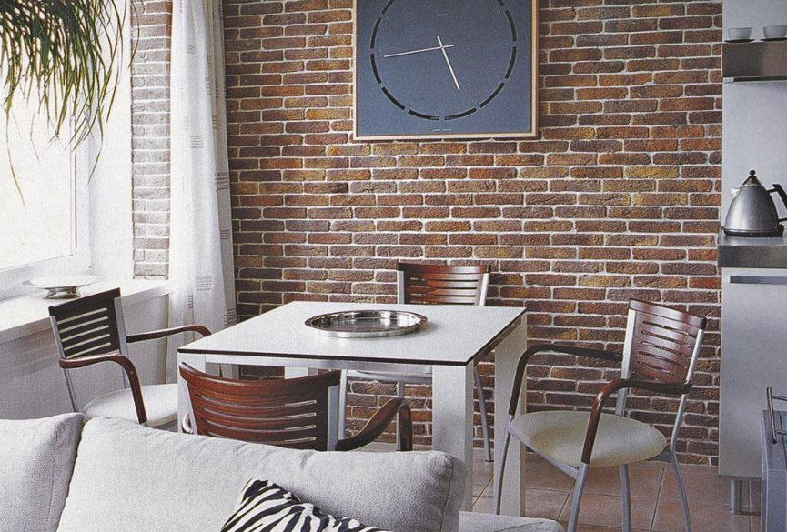 Монтаж декоративного кирпича должна производится с угла, в процессе заполняя всю комнату, и уже напоследок прокладываются дверные и оконные проемы.