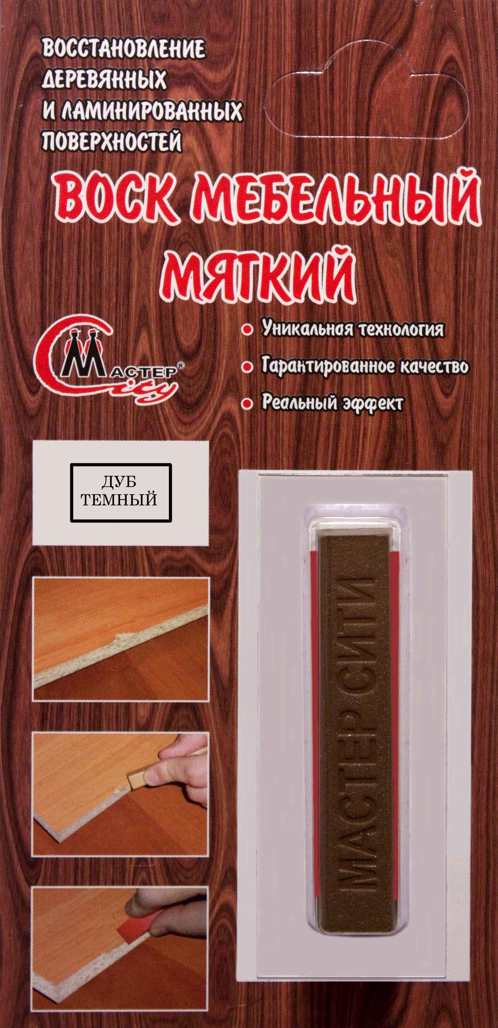 - Воск мебельный мягкий (восковая шпатлевка). Используется для заделки сколов, царапин, трещин на деревянных и ламинированных поверхностях корпусной мебели, межкомнатных дверей, ламината и паркета. Обеспечивает влагостойкость отреставрированной поверхности.